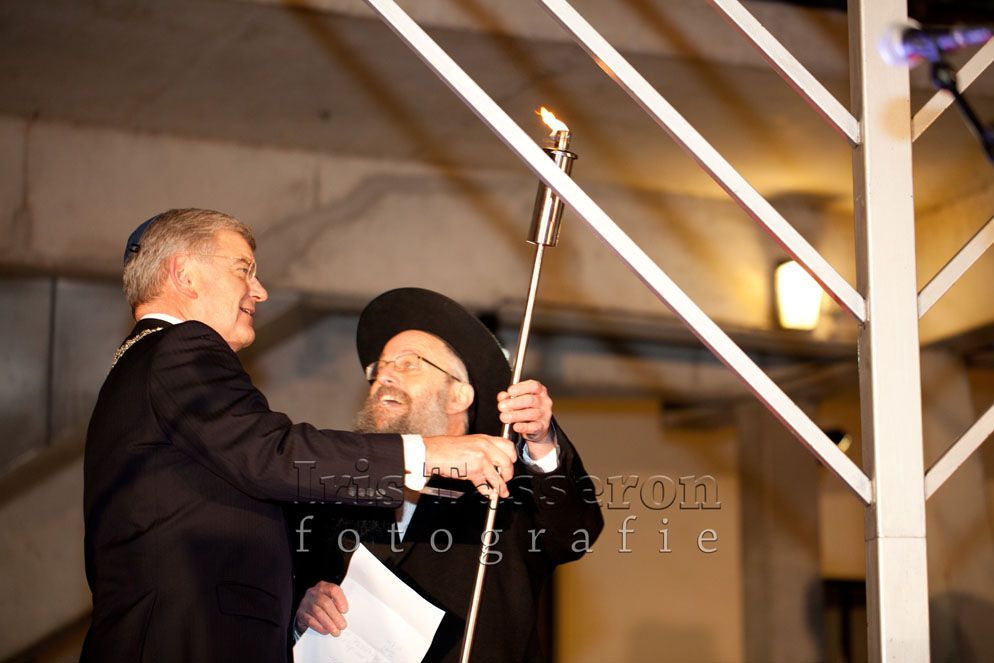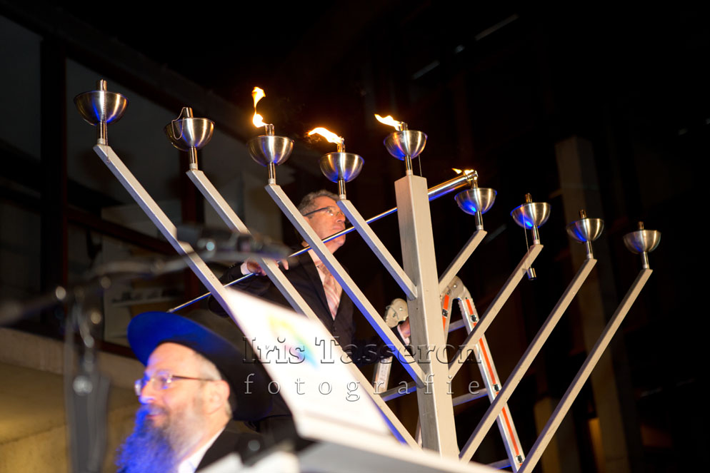 In het bijzijn van de ambassadeur van Israel, Haim Divon, is achter het stadhuis in Utrecht Chanoeka gevierd. De ambassadeur en ook de burgemeester, Jan van Zanen, ontstaken een lichtje onder begeleiding van Rabbijn Heintz. Een kleine impressie.