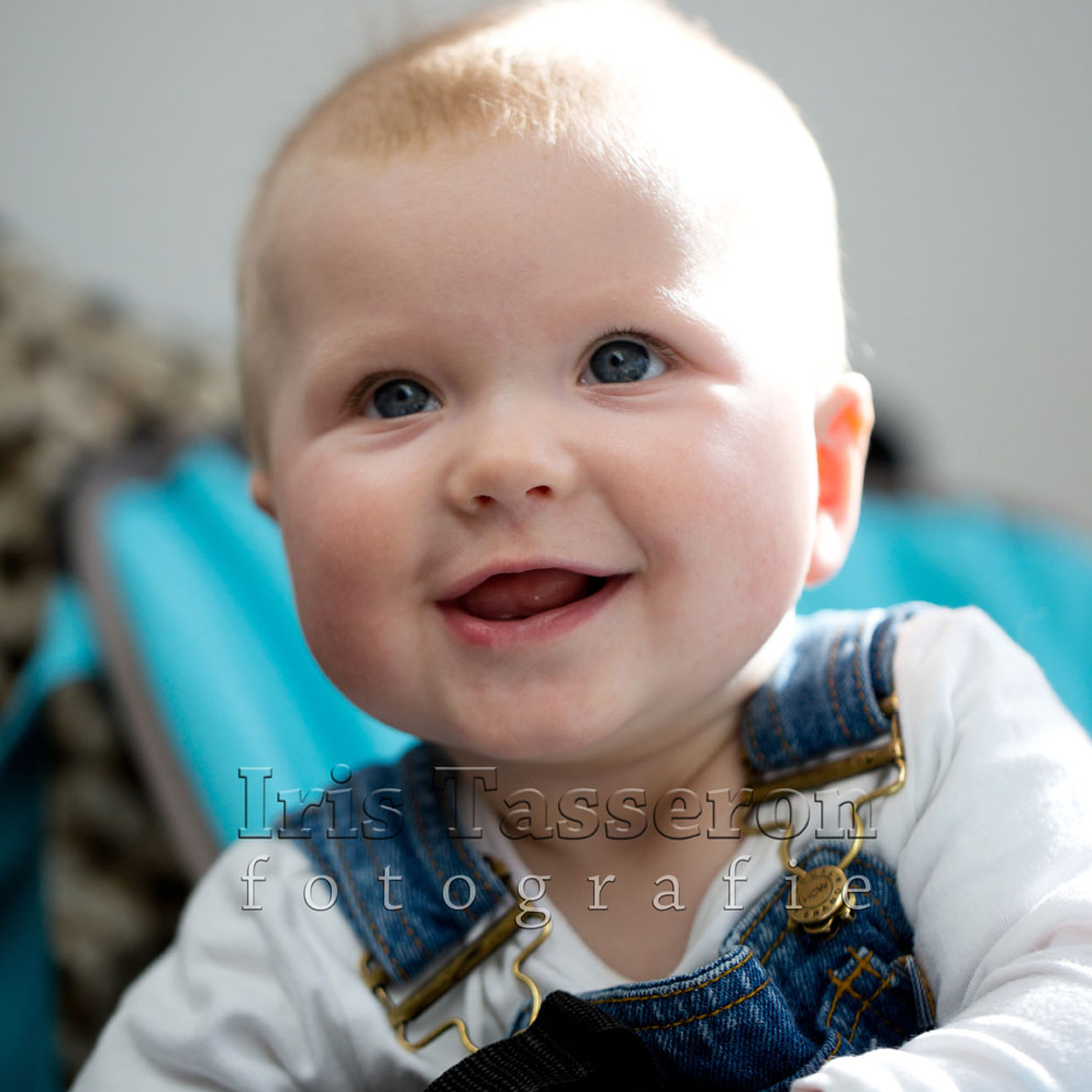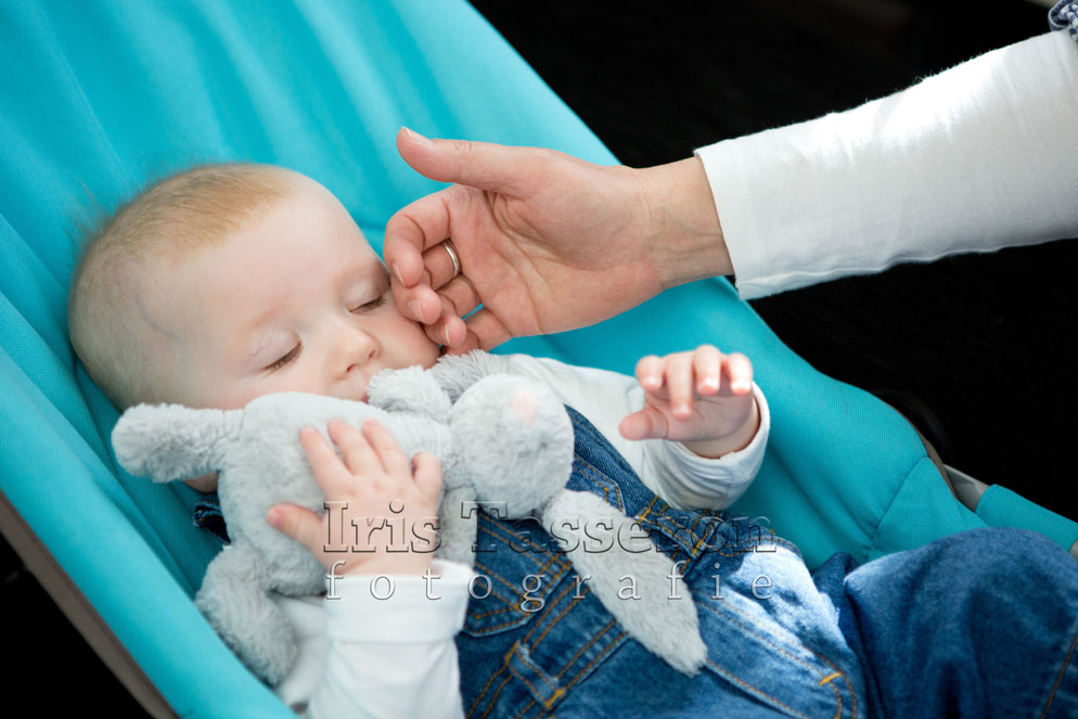 Evi heeft intussen een hazenslaapje gedaan en kijkt heel tevreden rond. “Het is een lief en vrolijk kind dat de hele nacht doorslaapt”, zegt Janine. “Ik vind het verschrikkelijk leuk om met haar bezig te zijn.”