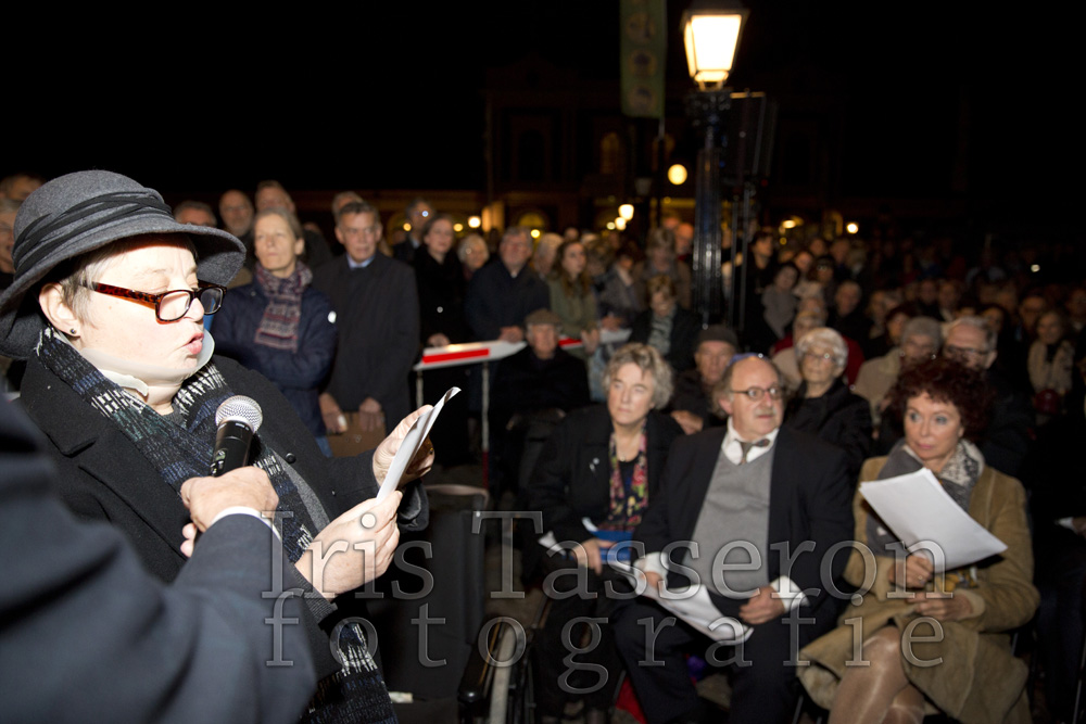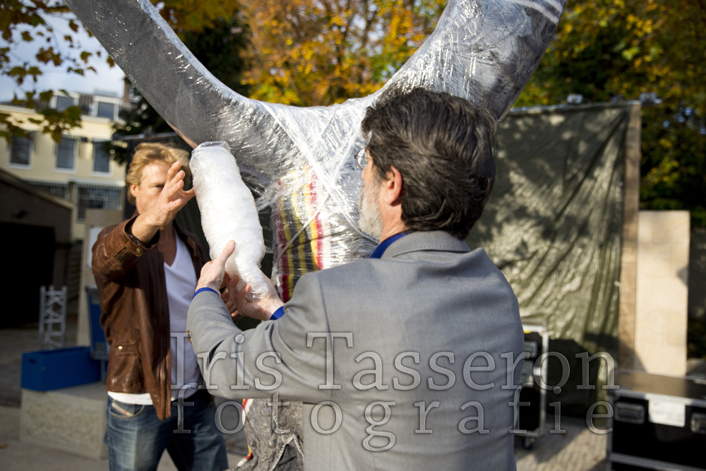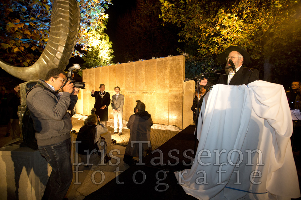 29 oktober 2015 is het zover. Het Joods Monument in de stad Utrecht is onthuld door de kunstenaar Amiran Djanashvili en burgemeester Jan van Zanen. Overdag is het beeld heel even te zien als Amiran samen met de architect Erik Meulenbelt het plastic en de dekens van het beeld afhaalt. En ’s avonds is het druk, heel druk en is Utrecht een monument rijker.