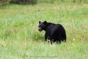 We leggen veel kilometers af in de auto. We komen op plekken waar we niet zouden zijn geweest als we hier gewoon op vakantie zouden zijn. Onderweg naar Pincher Creek, ten zuiden van Yoho National Park rijden we door een kleiner park. Hier zien we de huurcampers niet meer. Het is rustig op de weg. Misschien ook wel omdat het de hele dag al regent. We zien eerst vlak langs de weg een zwarte beer.